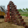 提升机, 配合SKT一14 m型跳汰机, 完成洗选矸石的提升运输和脱水, 装料方式为掏取式。 该机长度14.8m, 倾角60°, 斗链节距400 mm, 勺斗宽度800 mm, 斗链速度0.16 m/s, 生产能力75t/h。