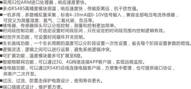 升级版IL系列微电脑智能控制器是一种通用型环境控制器,集采集、显示、控制、记录、通信于一体,采用32位进口ARM处理芯片,系统设有过压、过流、防雷击等保护电路,具有测量、性能稳定、使用寿命长、响应速度快等特点。