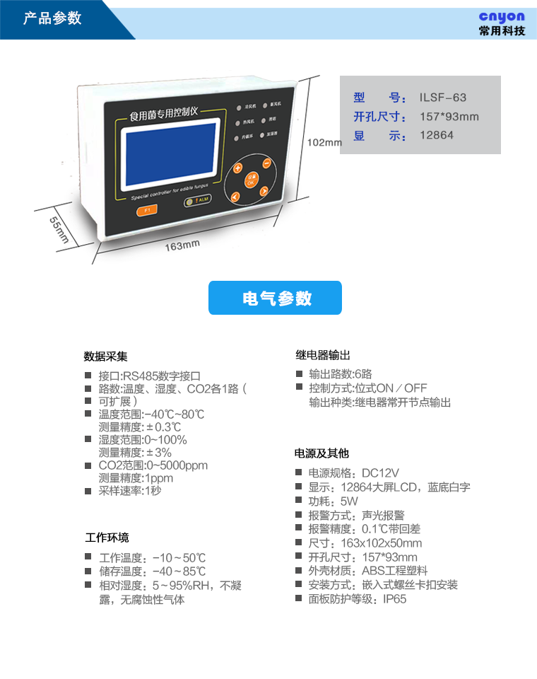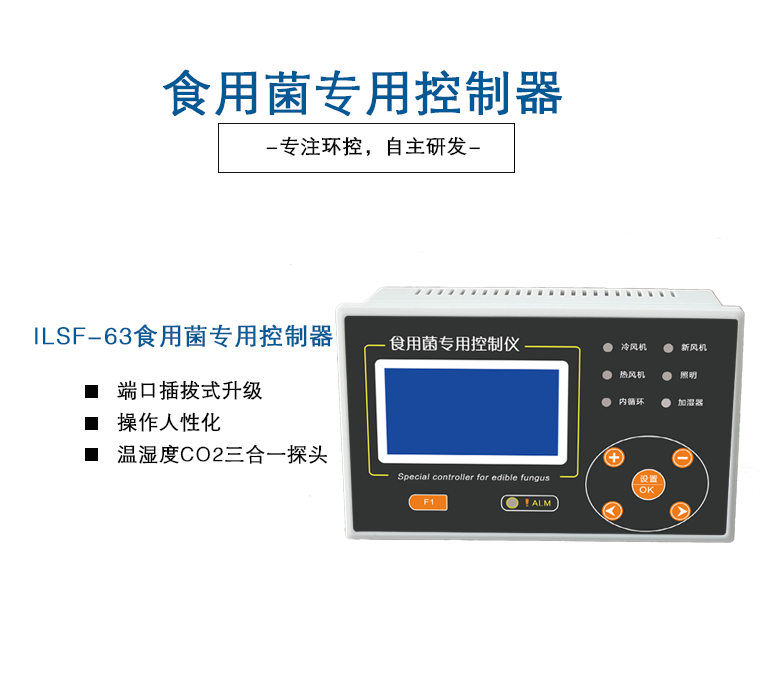 温湿度CO2一体化食用菌控制仪是一种型环境控制仪,用于温室大棚、食用菌工厂化、冷库等环境的智能控制。