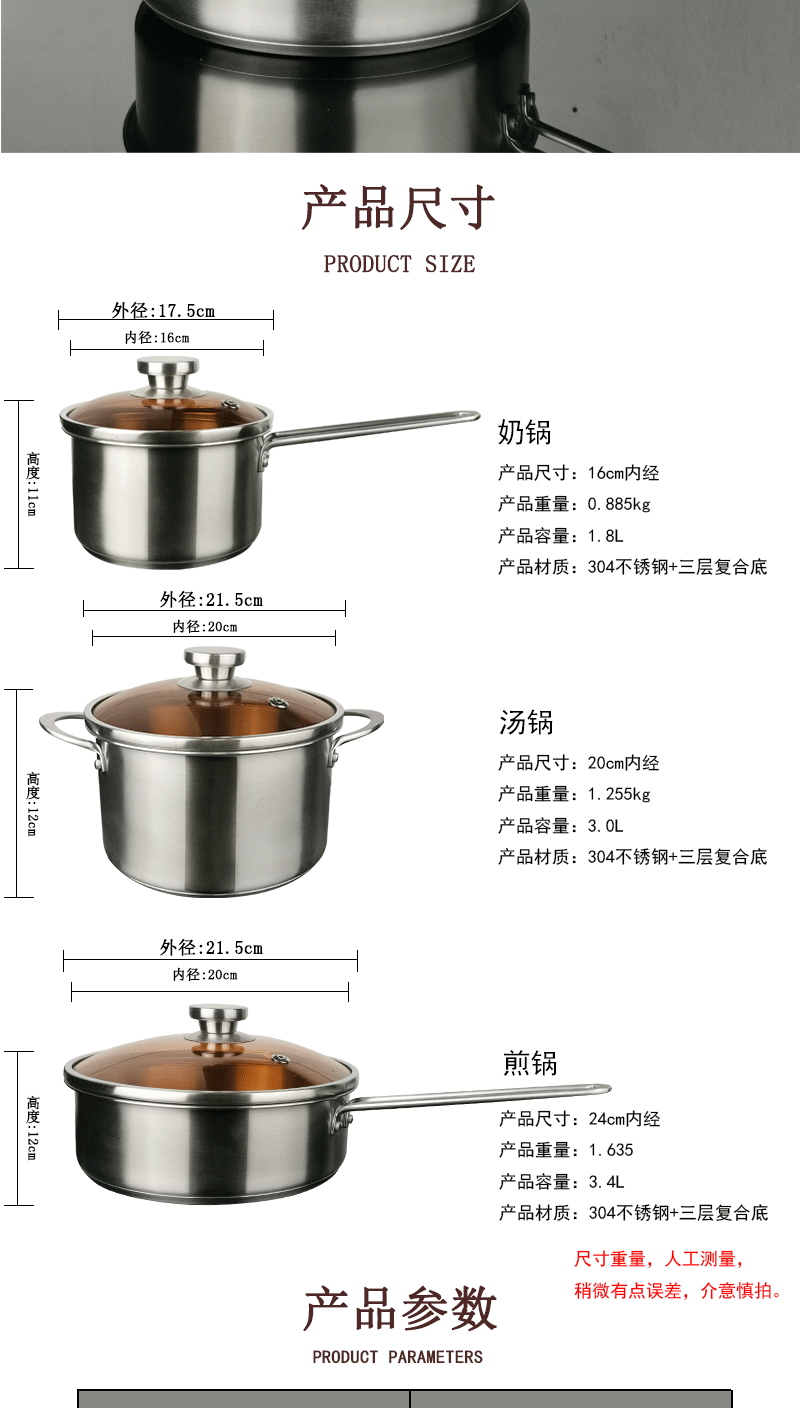 热仕度304不锈钢平板锅锅具三件套 下一条