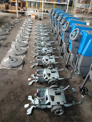 自主生产的洗地机,物美,产品质量有,整机采用不锈钢标准价,吸水扒和刷盘罩都是压铸铝一次成型,耐腐蚀,不易变形,底盘统一镀锌,整机电控系统,标配天能电池,水箱材料和德国凯驰同材料。