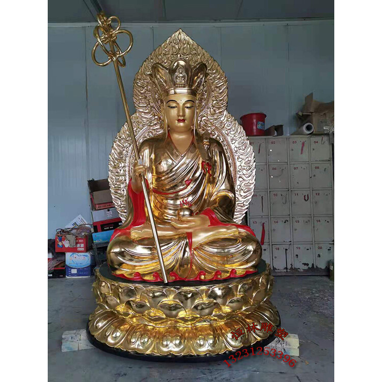 九华山地藏王佛像,我们通常称为地藏王菩萨铜像,纯铜铸造,高度2米,颜色可彩绘可鎏金可仿古,我们是铜佛像定做厂家,欢迎来电来图加工定制。