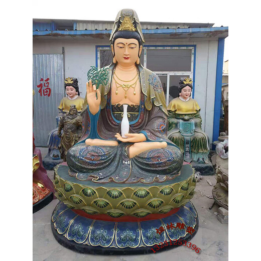 观世音菩萨佛像,我们通常称为观音铜像,纯铜铸造,高度2.6米,颜色可彩绘可鎏金可仿古,我们是铜佛像定做厂家,欢迎来电来图加工定制。