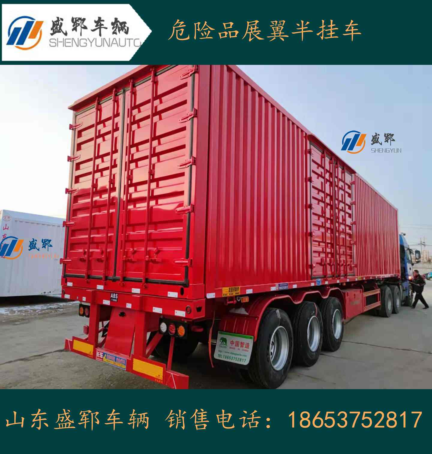梁山盛郓汽车贸易有限公司为您提供13米危险品展翼厢式运输半挂车。山东盛郓集团(车辆)有限公司是车生产企业,经过十余年的发展,目前公司已成为集产品设计、科研开发、生产销售为一体汽车改装企业。主导产品有“盛郓”牌系列半挂车、仓栅运输半挂车、三线六轴低平板、四线八轴低平板半挂车、五线十轴低平板半挂车、危险品仓栏运输半挂车、危险品栏板运输半挂车、危险品骨架运输半挂车、危险品展翼厢式运输半挂车、六线十二轴低平板半挂车、多轴线低平板半挂车、可拼接、可抽拉、可拆卸、可转向多功能低平板。集装箱运输挂车(骨架车、平板车);栏板车、风电塔筒运输车、风叶抽拉运输车、山地工装转运车、桥梁运输炮车、工程机械运输车(液压升降低平板车、动力鹅径低平板车、凹心低平板车)、可伸缩式特种运输车、额头可拆卸低平板、厢式车、码头车集装箱骨架运输半挂车、低平板运输半挂车、轿运车自卸车、油罐车、铝合金罐车、不锈钢罐车、粉粒物料运输车、散装水泥车、特种车等。