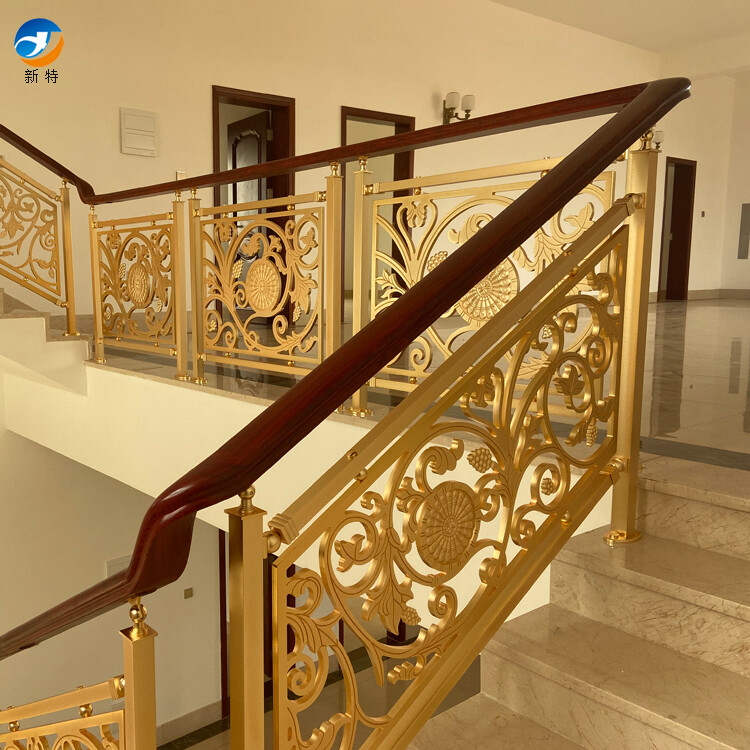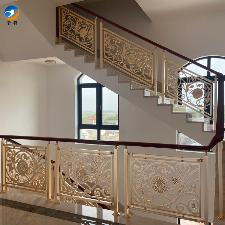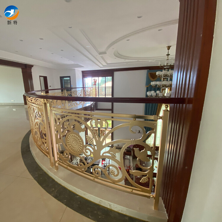创意新型铜艺楼梯扶手铝艺护栏,在别墅装饰的选择方面也偏向年轻创意,各种异性大胆的铝雕刻护栏雕花护栏都可能会出现在这个风格上面,但是简风的楼梯护栏也是跟这个风格比较容易搭配的。现代简约的新中式别墅装修风格建议搭配造型上比较有创意的仿铜拉丝铝艺雕刻楼梯护栏,为别墅空间营造一个的亮点,给人以画龙点睛之感。中式风格的铝艺雕刻仿铜楼梯护栏选择也比较多,尤其是在现代中式的搭配中,楼梯护栏可以偏向中式也可以偏向现代,还可以居于二者之间,而且结合软装的氛围搭配,中式的仿铜拉丝楼梯护栏还是非常棒的点缀元素。