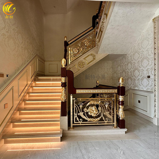 家装轻奢法式铜艺楼梯 铜板弯弧楼梯扶手图片
