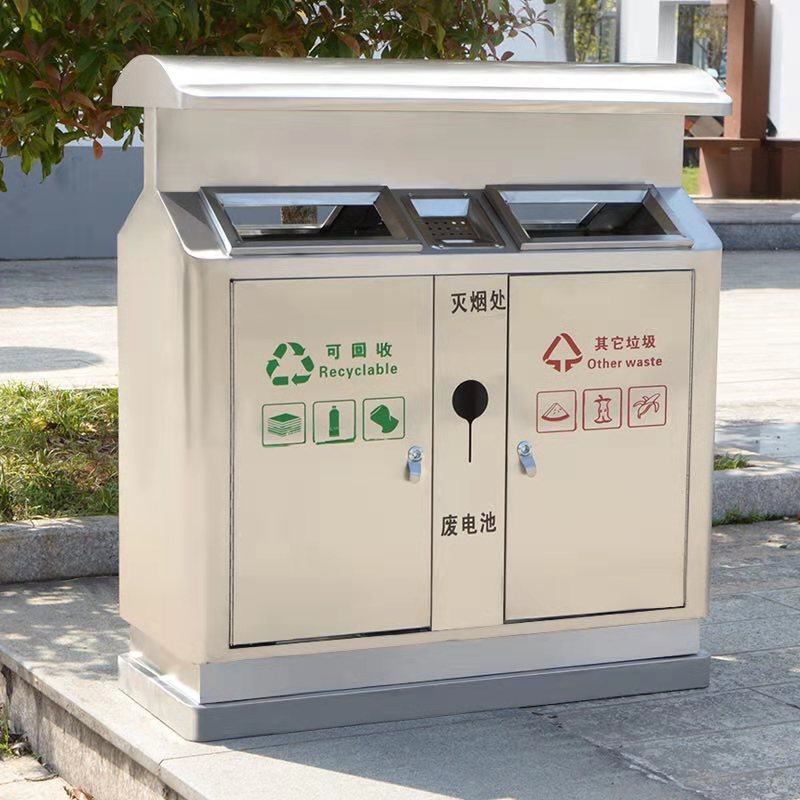 尽量选择冷轧钢材质的垃圾桶,冷轧钢使用寿命长,它有着较强的耐腐蚀耐酸性,加上本身材质坚实,不容易变形,现在摆放在道路两旁的垃圾桶,多多少少都会有一定的人为破坏,而且由于材料特性。