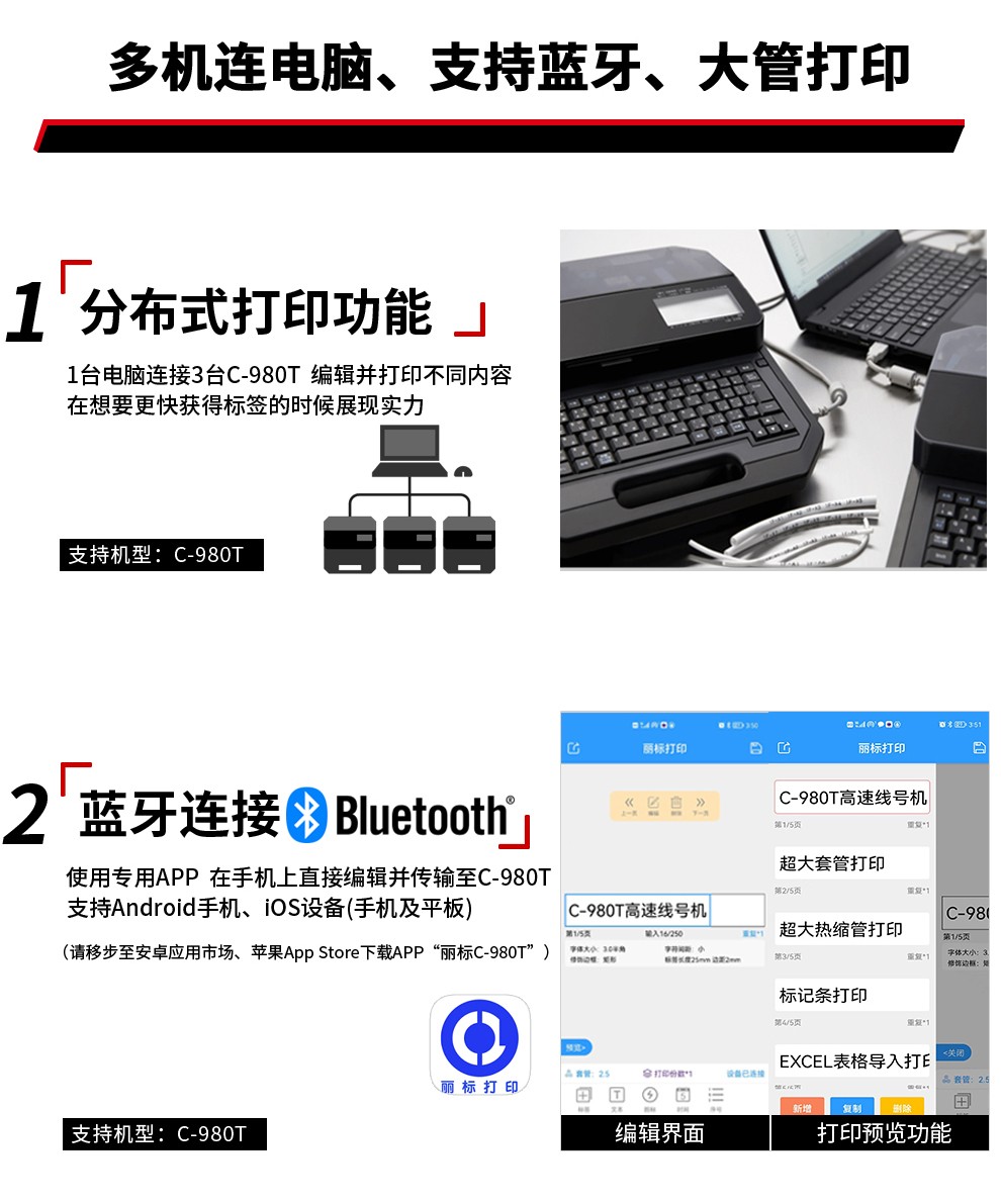 北京欧丽标线号机C-980T套管热缩管标签印字机