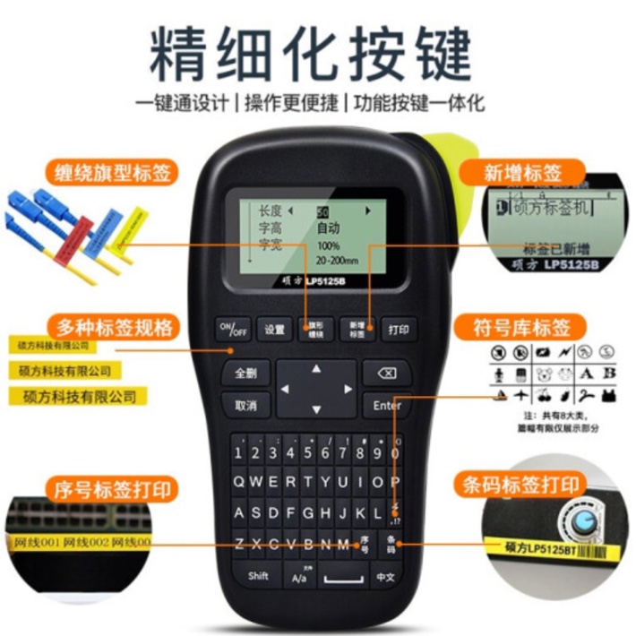 硕方标签机LP5125手持线缆标签机网线旗帜标签对折线缆标识