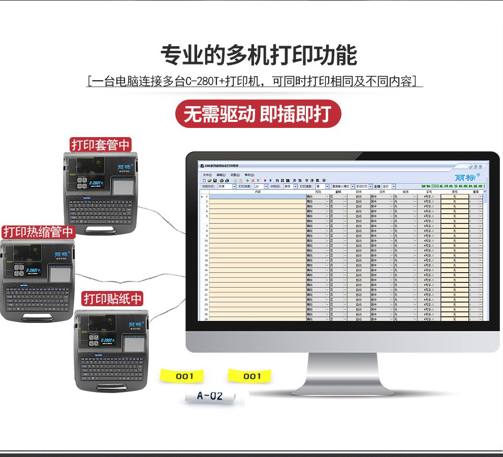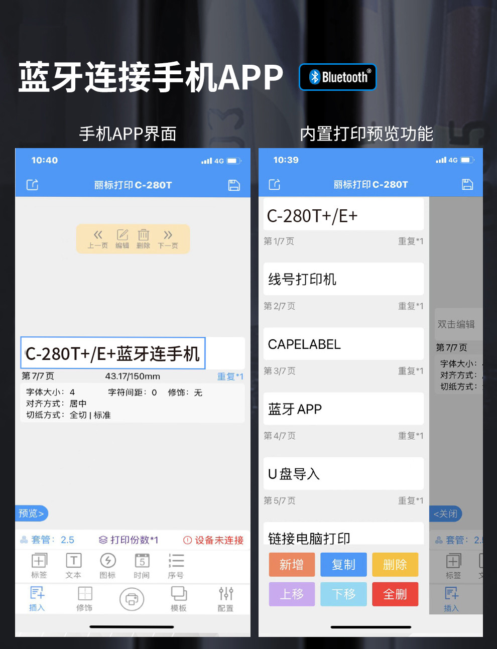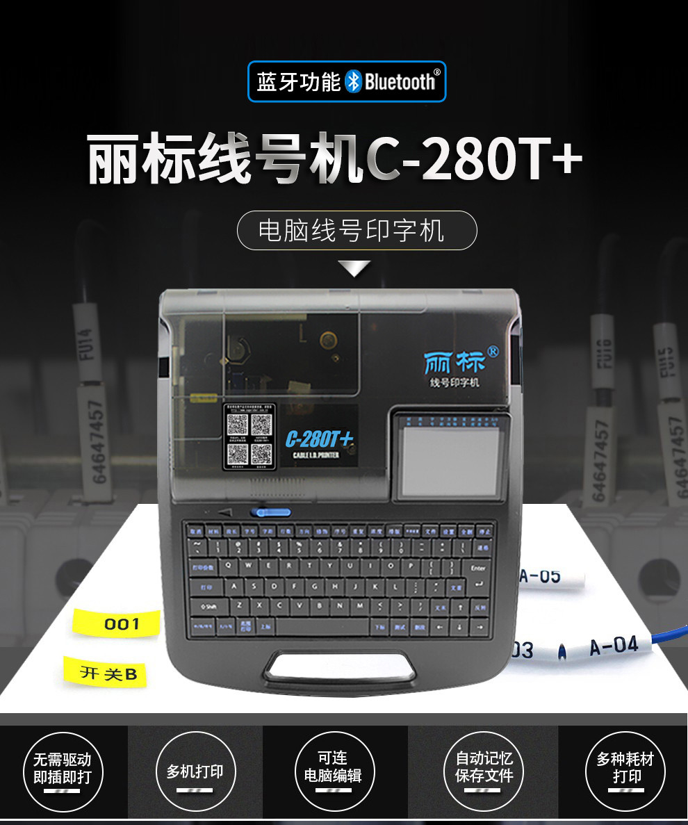 丽标线号机C-280T+电脑蓝牙线号机支持U盘导入PVC套管打码机
