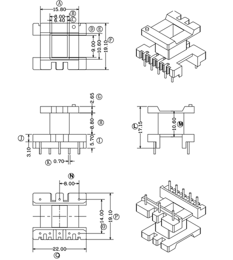 深圳市慧瑆电子有限公司 » 深圳市慧瑆电子有限公司热销产品 » HXH-EE2210立式5+3高频变压器电木骨架