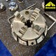 西班牙FRESMAK夹具系统和零点快换系统机械夹紧系统自带弹簧,通过复杂的机械传动实现滚珠对拉钉的锁紧,裸露的滚珠容易受金属屑影响,机构有卡死风险。滚珠与拉钉间为点接触,受力面积不均,容易磨损。新型零点卡盘采用更大钢珠,没有滚珠保持器,更方便铁屑的清洁,密封式结构,不易受金属屑影响,机构无卡死风险。滚珠与拉钉间为面接触,受力面积均匀,不易磨损。传统零点卡盘采用圆柱形或锥形间隙配合,实现卡盘对拉钉的定位。可实现5微米重复定位精度。新型零点卡盘采用HSK空心锥柄定位原理,消除卡盘和拉钉的配合间隙。可实现2微米以内重复定位精度。