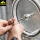 为此,请使用供货范围内包含的孔模板,在机床门面板上的视觉高度处钻一个带有 10 个孔的圆圈。然后使用螺丝法兰从内部将观察窗拧紧。