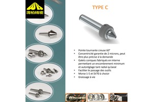 内部含滚子轴承或静轴承,顶针随工件同步旋转,适用于高速、长周期加工。