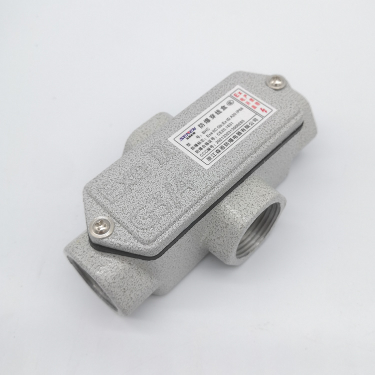 防爆穿线盒是一个方形盒子形状的连接件,是电路铺设中的一种装置,其在用电行业有着极为重要的作用,一般电缆保护管太长或弯太多的时候用来穿线保护使用的,常规有直通,左通、右通、四通、三通、元宝等功能性穿线盒,防爆穿线盒对防爆等级要求不高,一般只要符合Exe II 增安型标准就可以了。