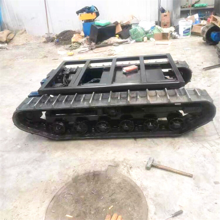 履带底盘由液压行走减速机(行走马达总成)、钢制(橡胶)履带、链轨、驱动轮、导向轮、支重轮、拖链轮、涨紧机构等组成。具有结构紧凑、性能可靠、、操作方便、维护简单、能耗少、经济性好等特点。适用与锚固钻机、水井钻机、旋喷钻机、潜孔钻机、坑道钻机、水平定向钻、挖掘机、扒渣机、掘进机、高空作业平台、农业机械等领域。