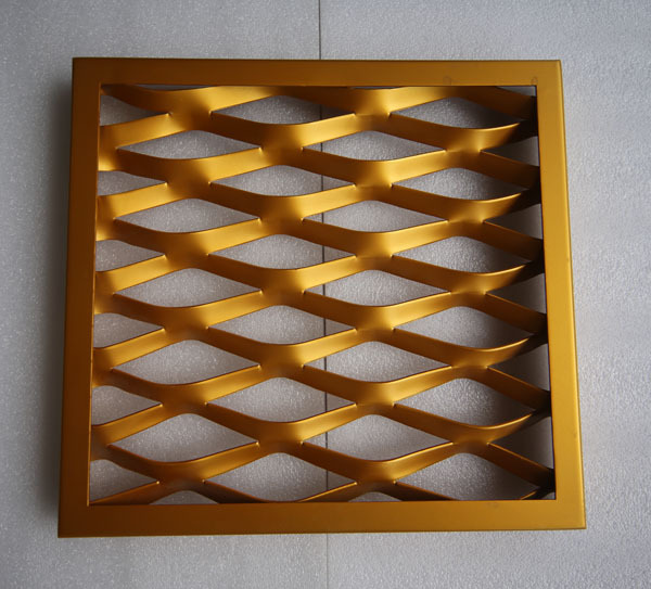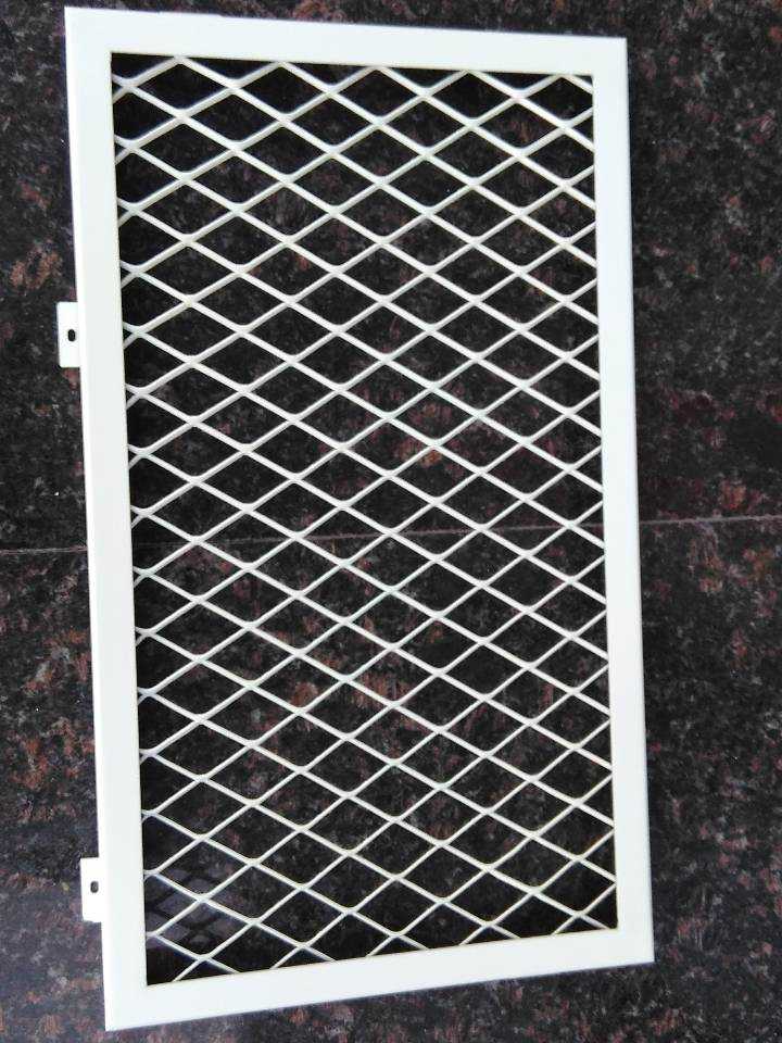菱形铝网板铝板为基材的金属板网一种,由各种材质的金属板采用业机械剪切,使原铝板的长度扩张到几倍至几十倍。还增加了铝板的强度和硬度,而且降低了菱形铝网板本身的重量,空气能透过菱形铝网板的网孔流动,从中不产生废料,降低了成本。
