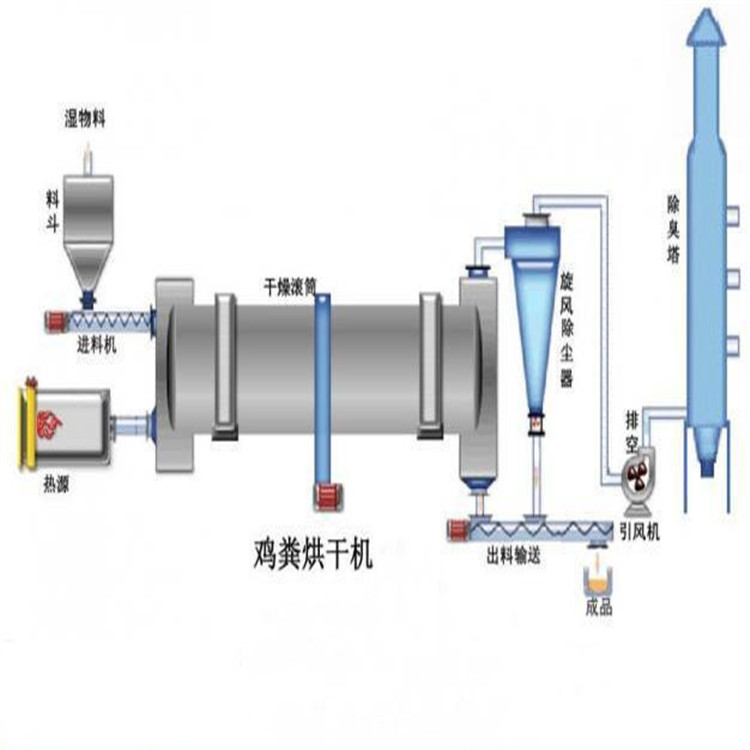 由卧式圆柱筒体、排气管道、进料装置、出料装置、筒内螺旋装置、清扫装置、拨料板、引风装置、传动装置、除尘设备与电控设备组成。性能特点 1、解决传统烘干机顺流脱湿造成的同向运动过程中随系统温度降低后水蒸气返回物料的问题; 2、在烘干过程中,热气流从尾部向前运动,与物料充分接触,通过热传导、对流、辐射传热量充分利用;3、通过内螺旋搅拌、扫散、抄板,推进物料运动,完成整个烘干过程;4、逆流传导脱湿,避免减少重复烘干程序。