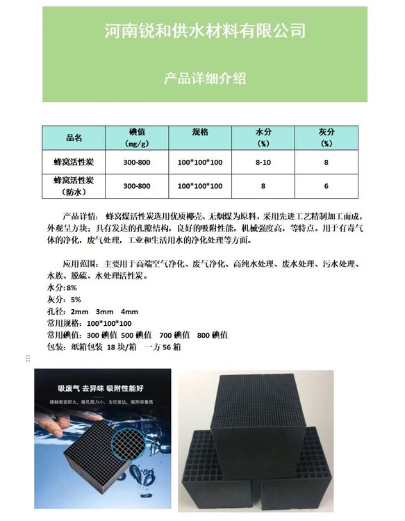 锐和防水蜂窝活性炭高碘值吸附速度快脱水除味能力强吸附过滤