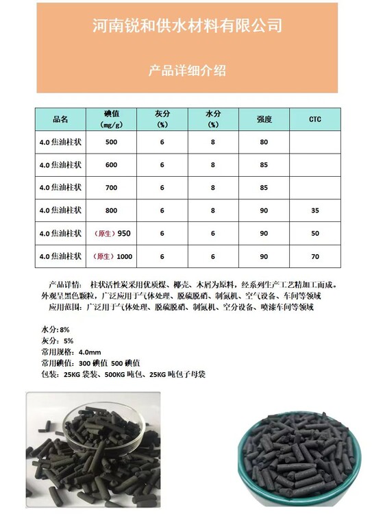 锐和焦油柱状活性黑色吸附异味活性炭废气处理用净化活性炭