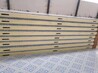 两库板之间先用锤子击打垫在聚氨酯库板上的方木,使板与板之间紧密靠拢。墙板与墙板之间用两套连接件楔紧,两套连接件分别固定在墙板与墙板缝隙的上外侧及下内侧,下内侧的连接件应尽量靠下,以便后浇混凝土能将连接件盖住。板与板的缝隙用连接件楔紧后应保持在3mm宽左右,如不符核要求,将板拆下,修整板边,然后重新安装使之板缝符合要求。固定连接件时,要注意将一套连接件的两个部件分别固定在凸凹两张库板的边缘,用φ5X13的铆钉固定,连接件的距离以能拉紧两库板为宜。楔紧楔铁时,锤子与楔铁保持垂直,避免碰伤库板,上下部位的楔铁应同时楔紧,用铆钉固定好楔铁。