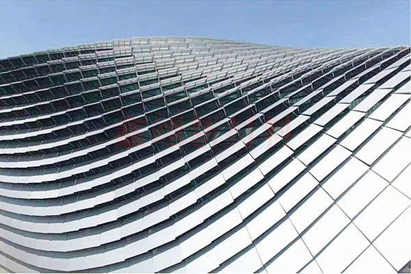 氧化铝单板主要是采用了阳极氧化工艺制作的铝单板,表面附有一层氧化膜,使用寿命长久,耐候性强。