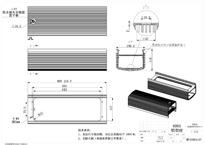 (7)表面处理方式:阳极氧化、静电粉末或者油漆喷涂;