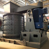 物料由机器上部垂直落入高速旋转的叶轮内,在高速离心力的作用下,与另一部分以伞状形式分流在叶轮四周的物料产生高速撞击与粉碎,物料在互相撞击后,又会在叶轮和机壳之间以物料形成涡流多次的互相撞击、摩擦而粉碎,从下部直通排出,形成闭路多次循环,由筛分设备控制达到所要求的成品粒度.