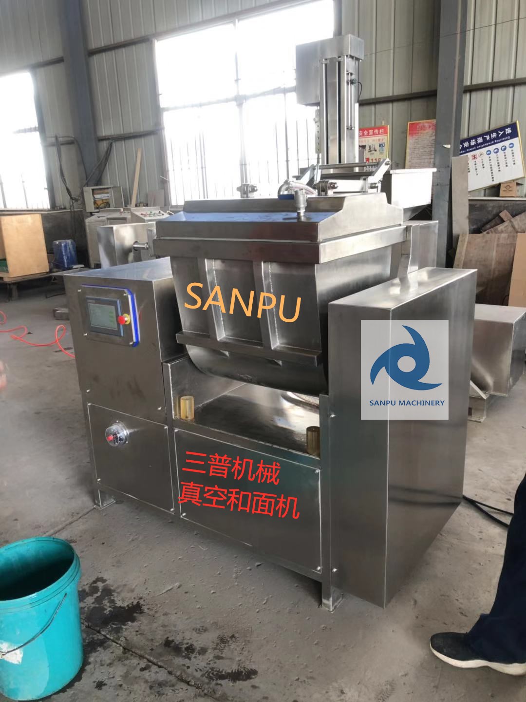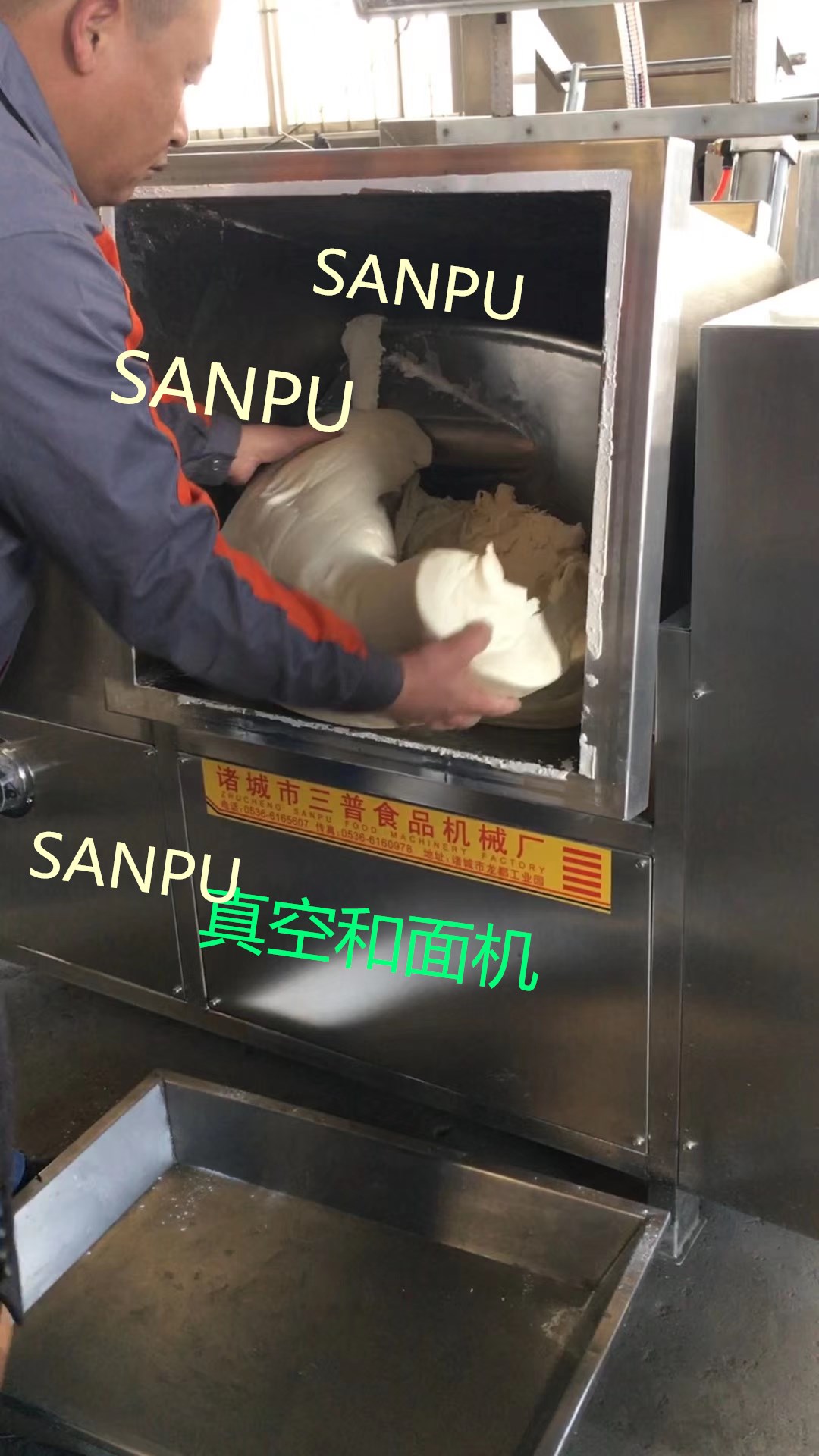 蒸饺面条真空和面机设备 全自动真空和面机图片 采用真空和面技术,对改善加工工艺、提高面制品质量,都有积极的意义。真空和面较普通和面技术,面团增水10%~20% (依面团轧面时不粘辊为限);面团游离水减少,不易浑汤,不易粘辊;小麦粉颗粒吸水均匀充分,可使面团色泽均匀,轧制的面片无色差,不起花;面团微粒分子间呈真空状态,空气间隔减少,提高了面团密度和强度,且生产过程中不易破皮、断皮、落条;和面时间6-8分/次。由于搅拌时间短、转速低,又无空气阻力,面团温升低,约5℃左右,避免了因面团温升过高会使蛋白质变性、损害面筋网络组织现象的发生。真空和面是面制品技术领域的一项新成果,它的应用,将对我国面制品行业的技术进步,以及加快食品工业向现代化方向发展,有着的推动作用。