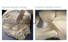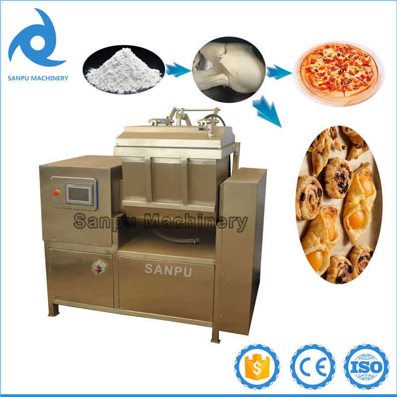 真空和面原理就是在真空负压状态下和面,小麦粉微粒(蛋白质分子和淀粉分子)在负压状态下搅拌,能快速均匀地吸透水分,促进面团的蛋白质网络结构充分转化。充分吸水是小麦蛋白质网络形成、淀粉糊化的重要条件。真空和面可使面团含水量在32%~45%左右(视面制品品种对面团软硬要求不同及小麦粉面筋含量的高低而定),真空度为-0 .5~0.7mpa。
