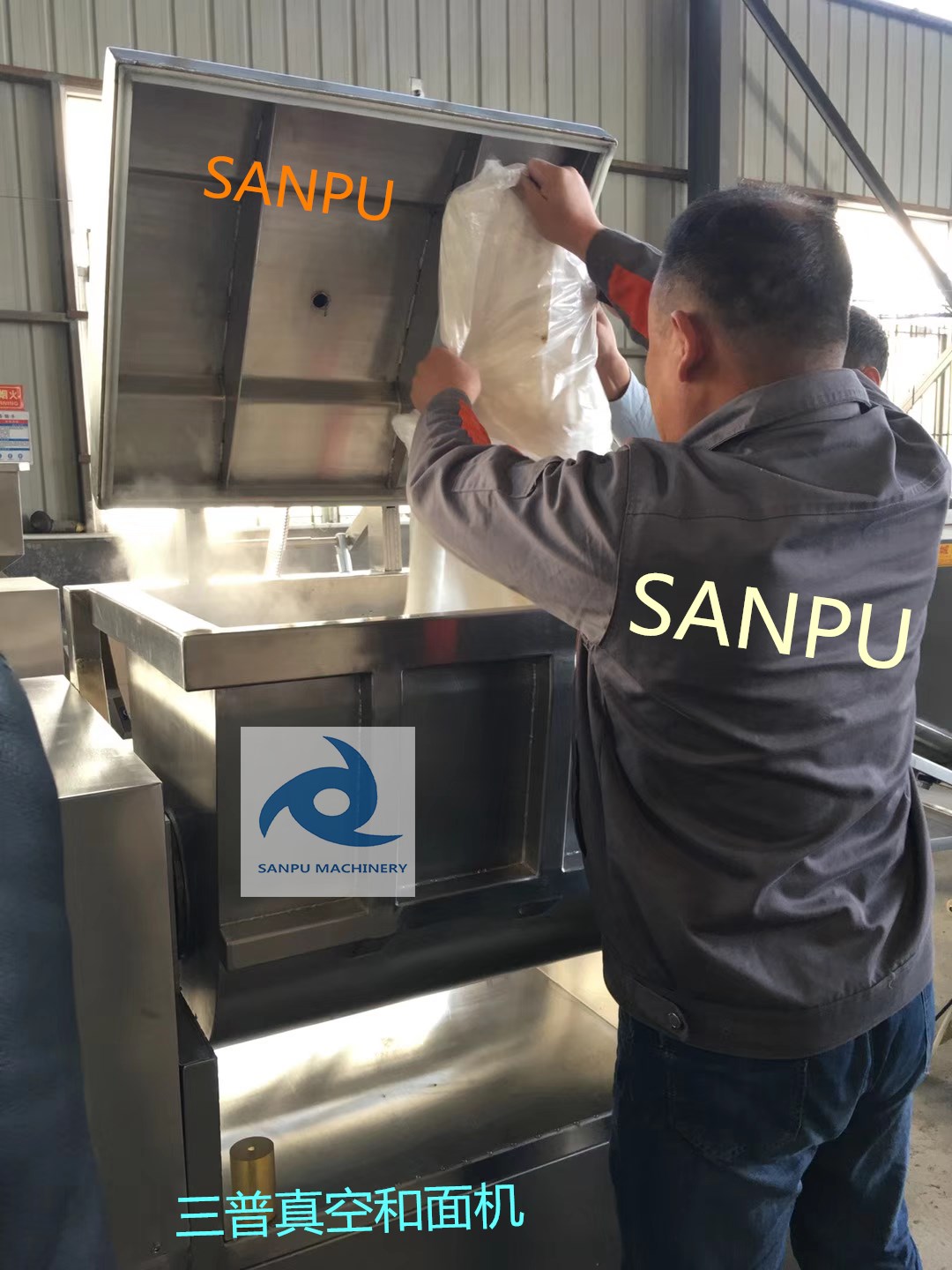 诸城市三普食品机械厂生产的真空和面机是我公司自行研制开发的的和面机。主要适用于各种面制品的加工,根据面食产品所使用的小麦粉的特性。我公司生产的板式浆叶真空和面机是在真空状态下模拟手工和面的原理,使面筋网络快速形成,使得蛋白组织结构均衡,使面的筋性、咬劲、拉力都远远优于其他形式和面机的和面效果。
