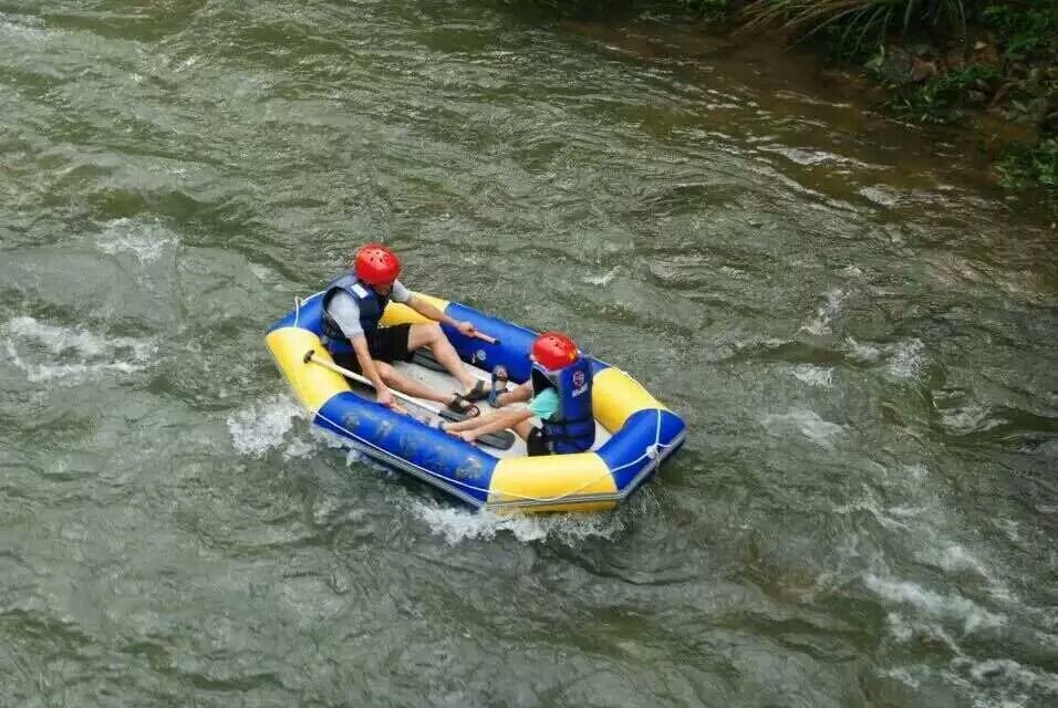产品配件:充气底板,铝合金船桨两只,充气坐垫两个,脚踩打气筒一个,维修包一个,船包一个,提供售后服务。