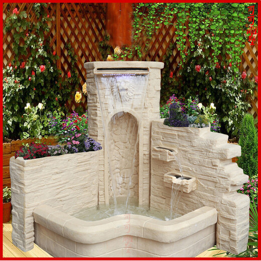 公园广场大型跌水盆 别墅花园水池流水喷泉雕塑 人造砂岩树脂欧式水景喷泉完全是用现代工艺和现代材料,经过泥塑成型,翻制模具,再进行生产和整理等若干工序而完成的雕塑艺术品。它具有天然石材的硬度,且防水,无放射性。 砂岩可根据客户的需求,生产出不同深浅、色彩及表面纹理的多种风格产品。所有人造砂岩雕塑产品都可以通过技术处理使作品表面呈现粗犷、细腻、龟裂、自然缝隙、风化等真石效果,产品表面效果有直接油漆处理,金箔、银箔、电镀、仿石、仿古制作。
