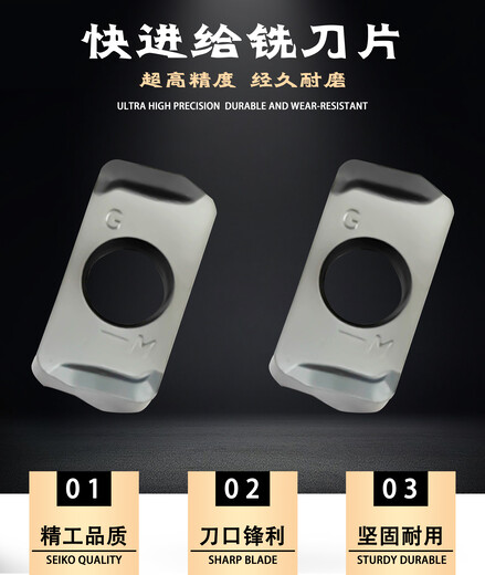 刃口锋利,耐磨开粗能力,效率更高稳定加工,切削快,抗崩损性好,使用寿命长,振动小切削厚度,均匀性好的槽型设计,流畅断屑,减少刀片背分力产生,抑制高频震颤,刀片尺寸按照国际标准严格执行,装在刀具上,严丝合缝,采用进口高强度细晶硬质合金基体。