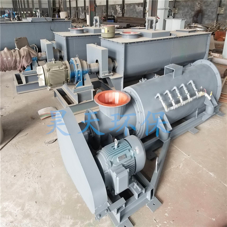 结构:由电机皮带减速机,进料口,出料口,震动装置,喷淋装置,主机搅拌筒,弹性装置组成