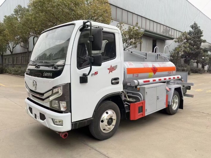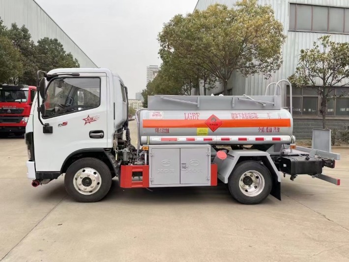 底盘配置:东风多利卡D5白色平顶单排驾驶室,全柴115马力国六发动机,万里扬5档变速箱,1.8吨前桥/3.5吨后桥(前盘后鼓),190mm车架,650R16钢丝胎(铝合金轮圈),2700mm轴距,ABS,排气管前置(前端加装一只防火帽)、前桥盘式制动器、限速装置,新法规危货运输底盘(防爆胎应急装置, 前碰撞预警,车道偏离提醒)。