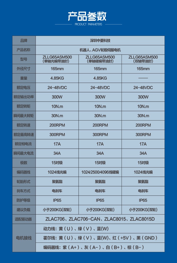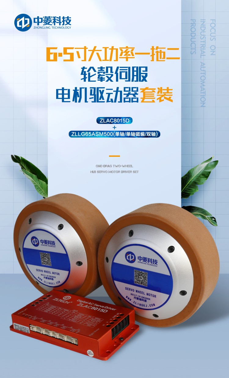 中菱科技6.5寸轮毂伺服电机大功率48V一拖二驱动套装200KG重载AGV