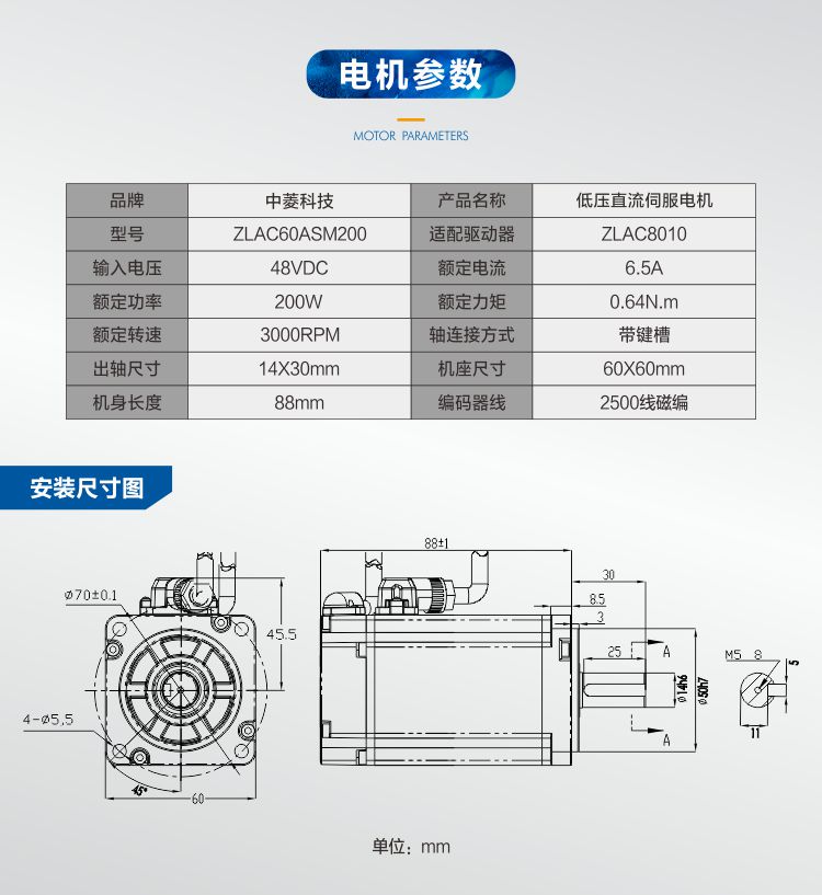 » 中菱科技200W60伺服电机驱动器36V低速恒扭矩马达直流低压