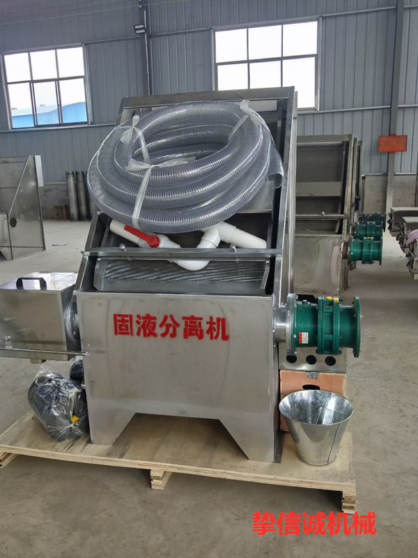产品简介:根据新农村建设的要求和人们节能意识的加强,现在,养猪场建沼气池和生化池处理粪尿,但是进沼气池的粪类物料都未经固液分离,实际使用证明这样直接的沼气培 养效果不甚理想。因为,未经处理的粪尿水进入沼气池,大大增加了沼气池单位容积的有机负荷量,因此沼气池的容积要增加很多。由于长期使用沼气池,发酵后留下大量残渣,使沼气池堵塞,容量减 小而造成沼气池不能使用,而清洗池即耗力又不安全,同时增加开支费用。如果直接销售鲜猪粪又很难运输。因此,我们发现应该对猪粪前进行固液分离措施,既可解决猪粪在沼气池的沉淀问题,增强 沼气池的处理能力,又可大大减小沼气池、生化池的建设面积。节省处理的建设投资和土地使用面积,分离出的猪粪还可直接作为果树、林木施肥和作为有机肥的原料。卖给有机肥厂做为有机肥原 料或自做有机肥,做到既有社会效益又有经济效益。此机可广泛做为鸡、牛、马及各类集约化养殖场对动物粪便、酒糟、药渣、淀粉渣、酱渣、屠宰厂等高浓度有机污水的渣液分离。