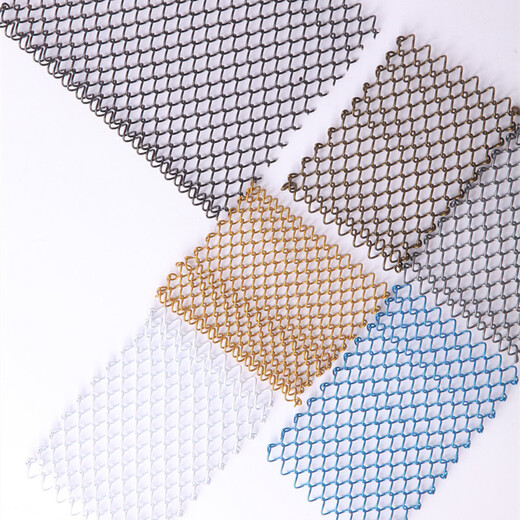 金属网帘一般选用铝镁合金丝或不锈钢丝螺旋编织而成。表面可以是原色银色也可以通过表面处理成金色,香槟色,红色,黑色等其他颜色。