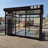 吸烟亭用料说明:立柱采用80*80*2.0方钢立柱,横梁为40*80*1.5,封1.2mm镀锌板喷漆(颜色可以按客户需求定制);主体骨架采用型钢整体焊接而成;天花板用pvc板吊顶,配照明灯具两套,漏电保护开关;地板采用3mm防滑铝板,门为玻璃门;玻璃采用12mm钢化玻璃;含防腐木凳子(下钢结构上铺防腐木),吸烟柱,排气扇等