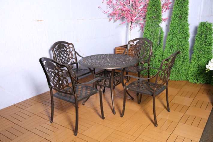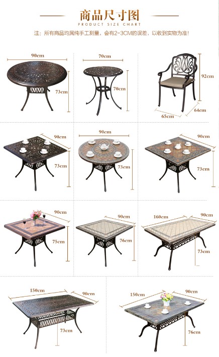 铸铝桌椅制作主料为的铝材质,制作过程一次性完成铸造,风格偏向欧式特点,是一种结实的户外家具,该产品对别墅庭院会所休闲区外摆,餐饮奶茶咖啡店外摆桌椅都非常适合。