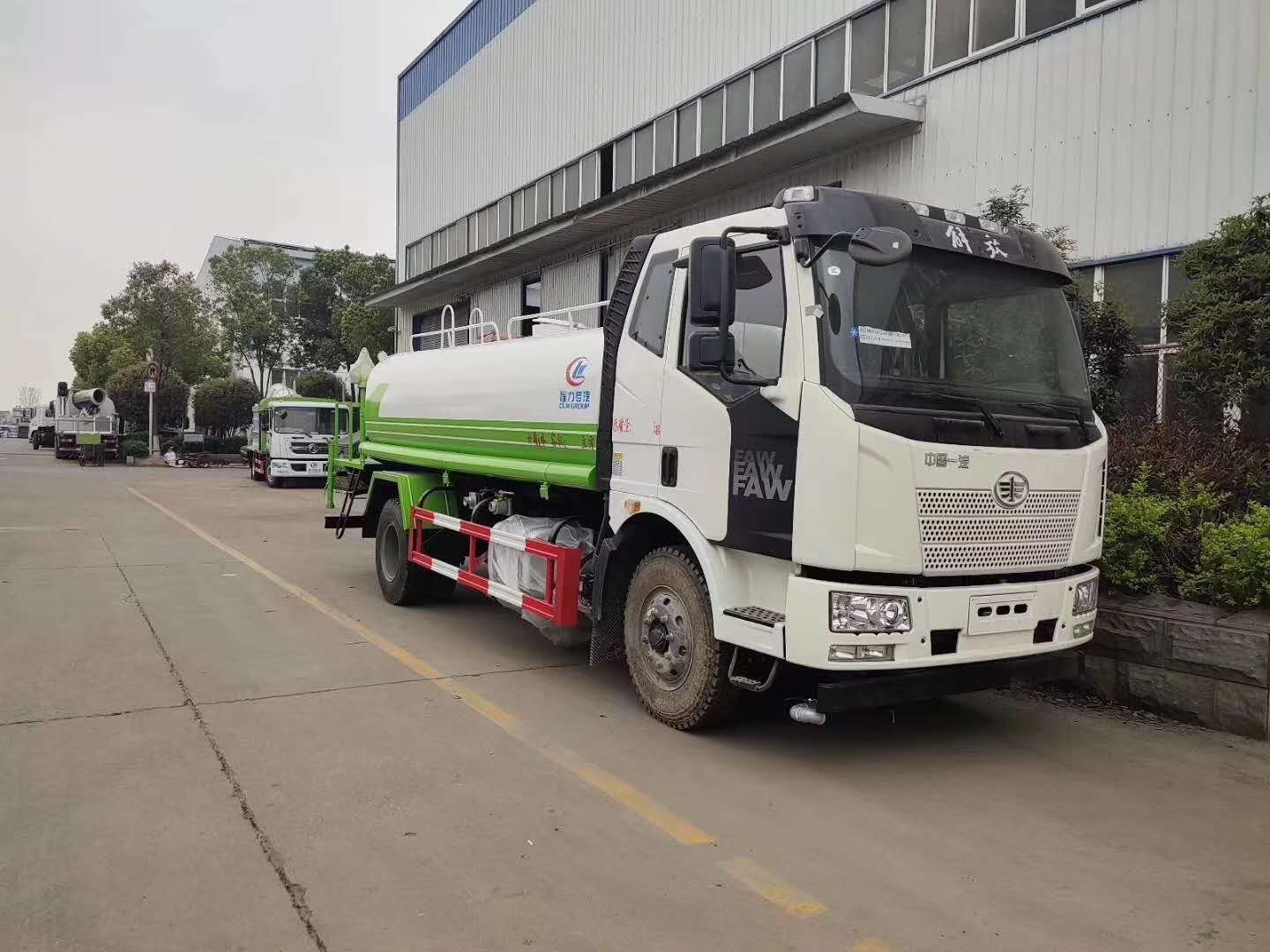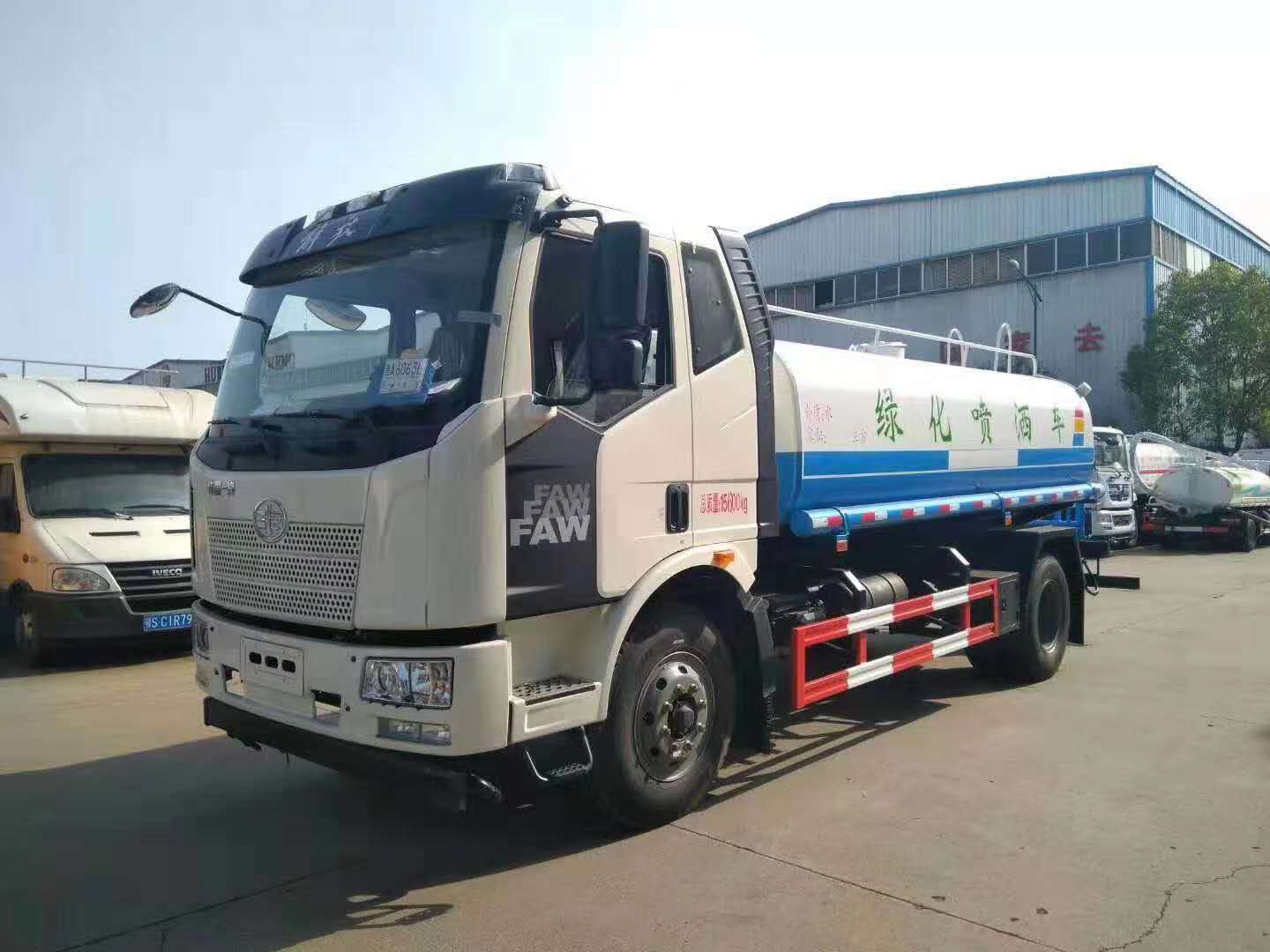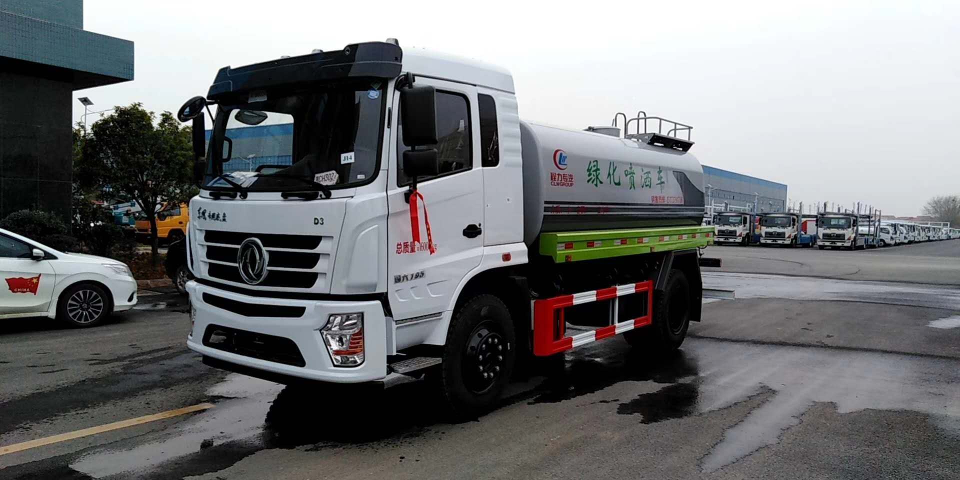D9-12吨洒水车上装配置:罐体有效容积10-12立方,采用5毫米厚武钢碳板板自动焊接制作,配品牌大功率洒水泵,带前喷后洒侧喷,尾部平台带高位水炮,可自吸自排。前冲14米宽,水炮射程28米,自吸深度7米。