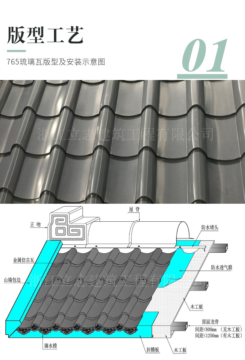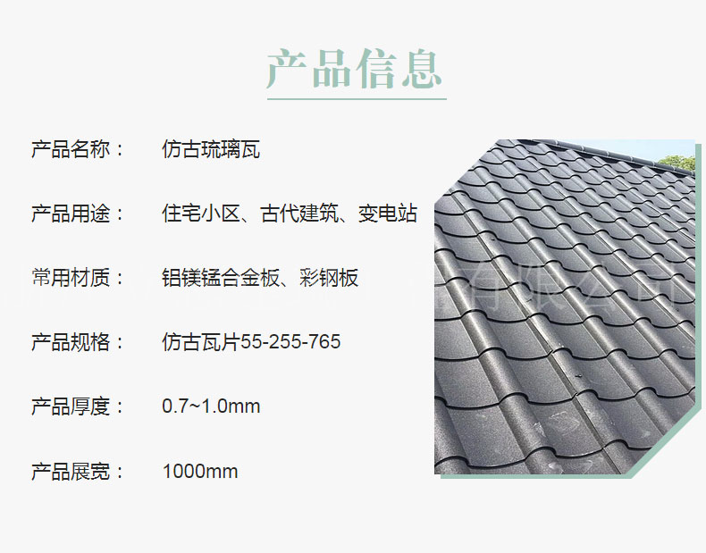 别墅765金属屋面瓦1.0mm铝镁锰琉璃瓦园林建材筒瓦
