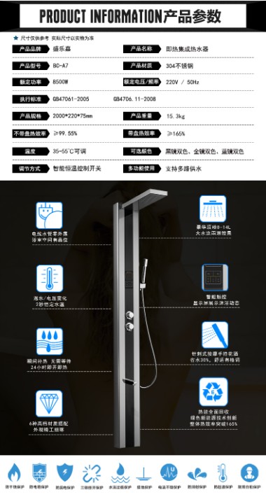 盛乐嘉智能恒温集成淋浴屏热水器BC-Q..