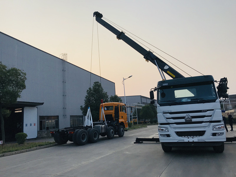 重汽8X4特种作业底盘,平顶带卧豪华驾驶室,D10.38-50发动机;变速器:HW19710变速器+HW70法兰式取力器;前轴:HR7前轴(盘);驱动桥:ST16自调臂双后桥(鼓);车架:双层车架(8+5/300);方向机:ZF8198方向机;悬架:前后标准版多片簧(11/11/12);ABS控制系统:带ABS(4S/4M)