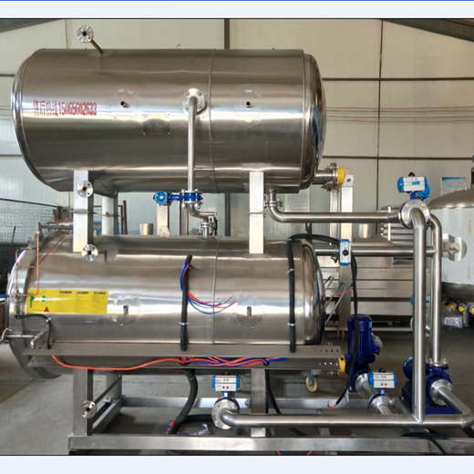 这种方式是采用喷嘴或喷淋管将热水喷到食品上,杀菌过程是通过装设在杀菌锅内两侧或顶部的喷嘴中,喷射出雾状的波浪型热水至食品表面,所以不但温度均匀无死角,而且升温和冷却速度迅速,能全面、快速、稳定的对锅内产品进行杀菌,特别适合软包装食品的杀菌。