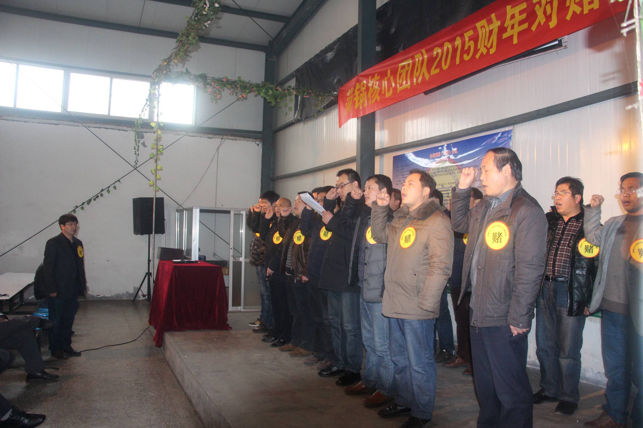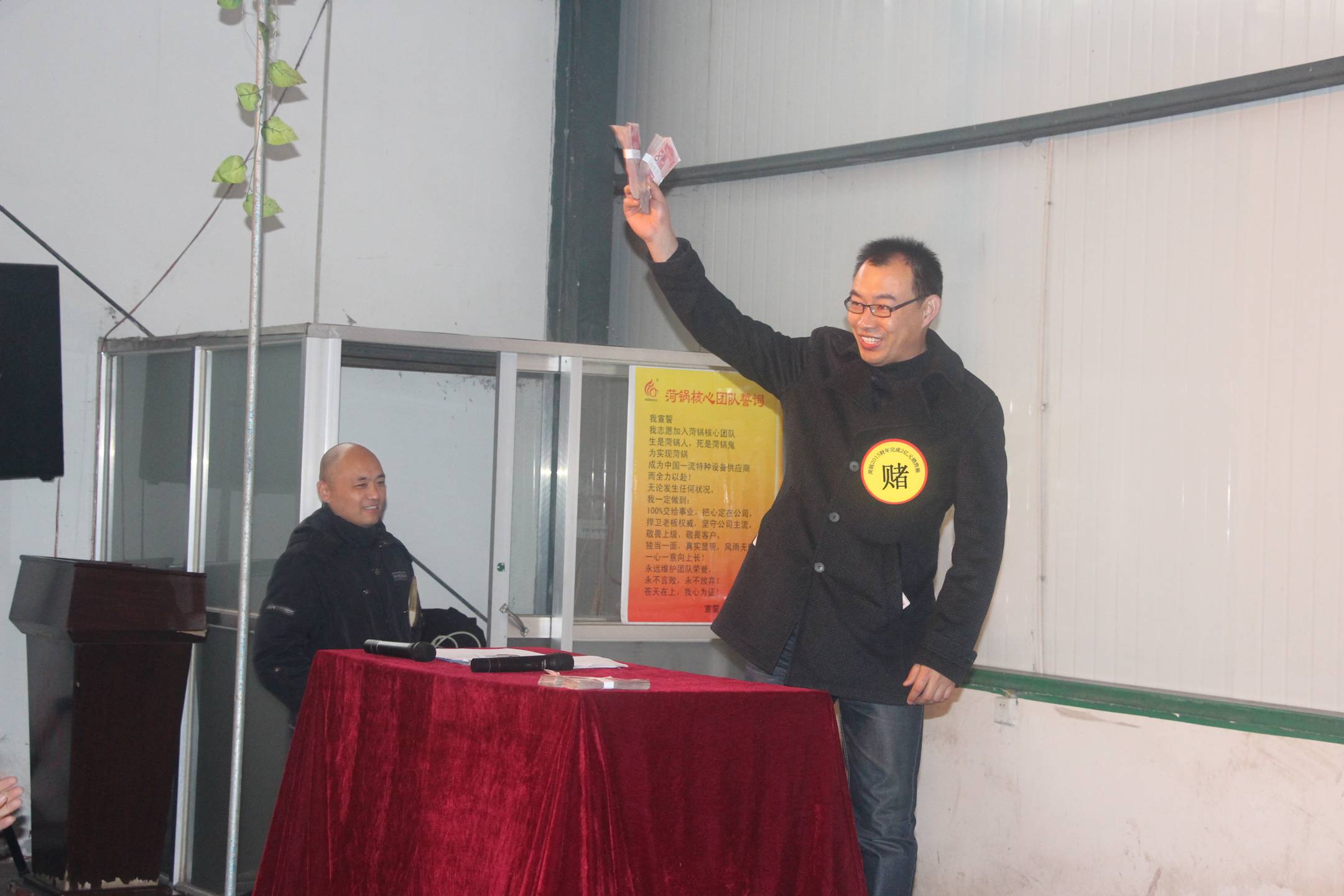 激情和挑战的决心点燃了会场的气氛。核心团队的每一个人,胸前都贴着一个“赌”字,似乎在宣示心中常记“赌”约,也在展示全体队员就“赌”我们老板行、“赌”我们公司行,将全身心地“交给”菏锅的决心,更彰显出对完成公司年度目标的必胜的信心。气势如虹,声势震天,展示了菏锅公司的精神风貌。 核心团队各成员激情洋溢、信念坚定,大家为了同一个目标同一个梦想携手并进、同舟共济,会场所有人都热血沸腾,张总的讲话再一次将现场推向了高潮。