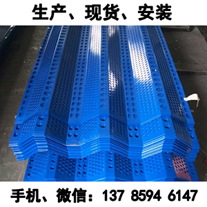 (3)防风抑尘网网片的安装:理论使用寿命15~20年。使用环境温度:-40℃至+80℃,连接采用彩钢螺钉和压板固定。挡风抑尘网扳的具体宽度、长度尺寸、弯曲度以及防尘网网板的开孔率应根据现实场地的实际情况进行设计。