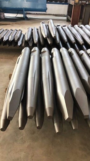 ??根据不容的工况,装载机破碎锤零售,选择很好的钎杆,对于提率、延长钎杆寿命都是至关重要的。钎杆按形状和功能一般分为楔形、菱锥形、平头形、圆锥形和宽凿形几种。
